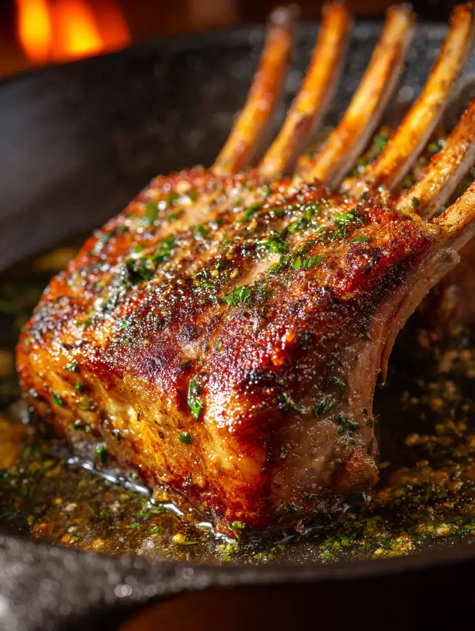 Pat the rack of lamb dry with paper towels, then season with salt and pepper. Heat olive oil in a cast-iron skillet over medium-high heat and sear the lamb for 2–3 minutes per side. You’re aiming for a deep golden color on the outside this locks in the juices and builds flavor.